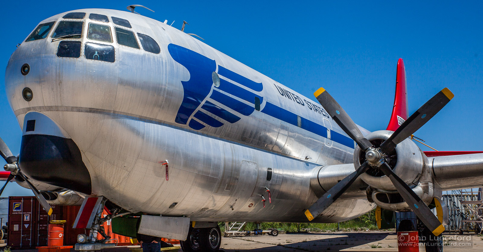 • Aircraft painted in colors of YC-97A/45-59595, the sole C-97 used in the Berlin Airlift, 2000.